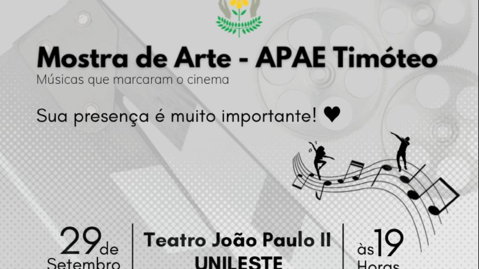 Encerando as atividades da Semana Nacional da Pessoa com Deficiência Intelectual e Múltipla. A APAE de Timóteo realizou no dia 29 de setembro, a partir das 19h, um grande espetáculo no Teatro João Paulo II - Unileste, em Coronel Fabriciano MG, que foi prestigiado pelas famílias dos nossos alunos artistas e representantes da nossa sociedade.