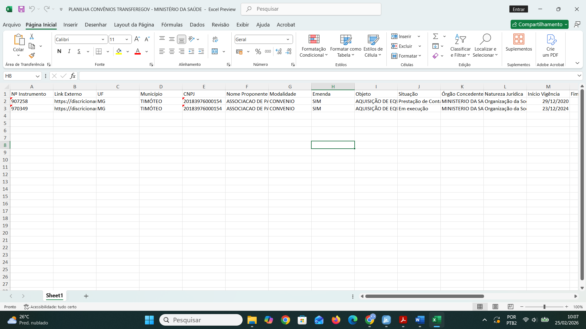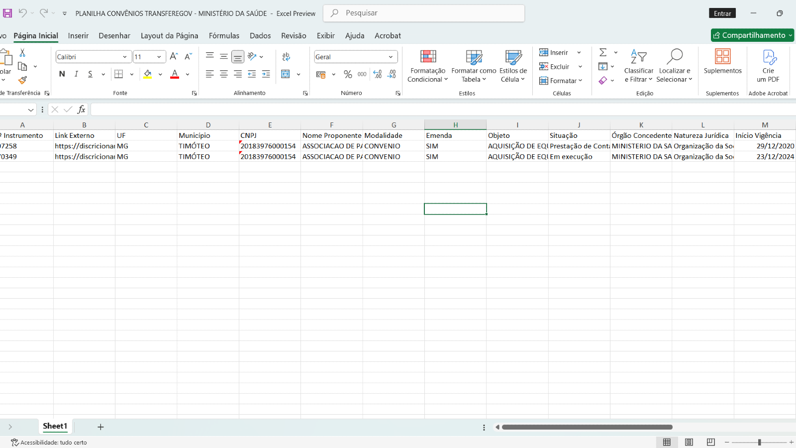 PLANILHAS DE CONVÊNIOS - RECURSOS DE EMENDAS PARLAMENTARES -2020-2024